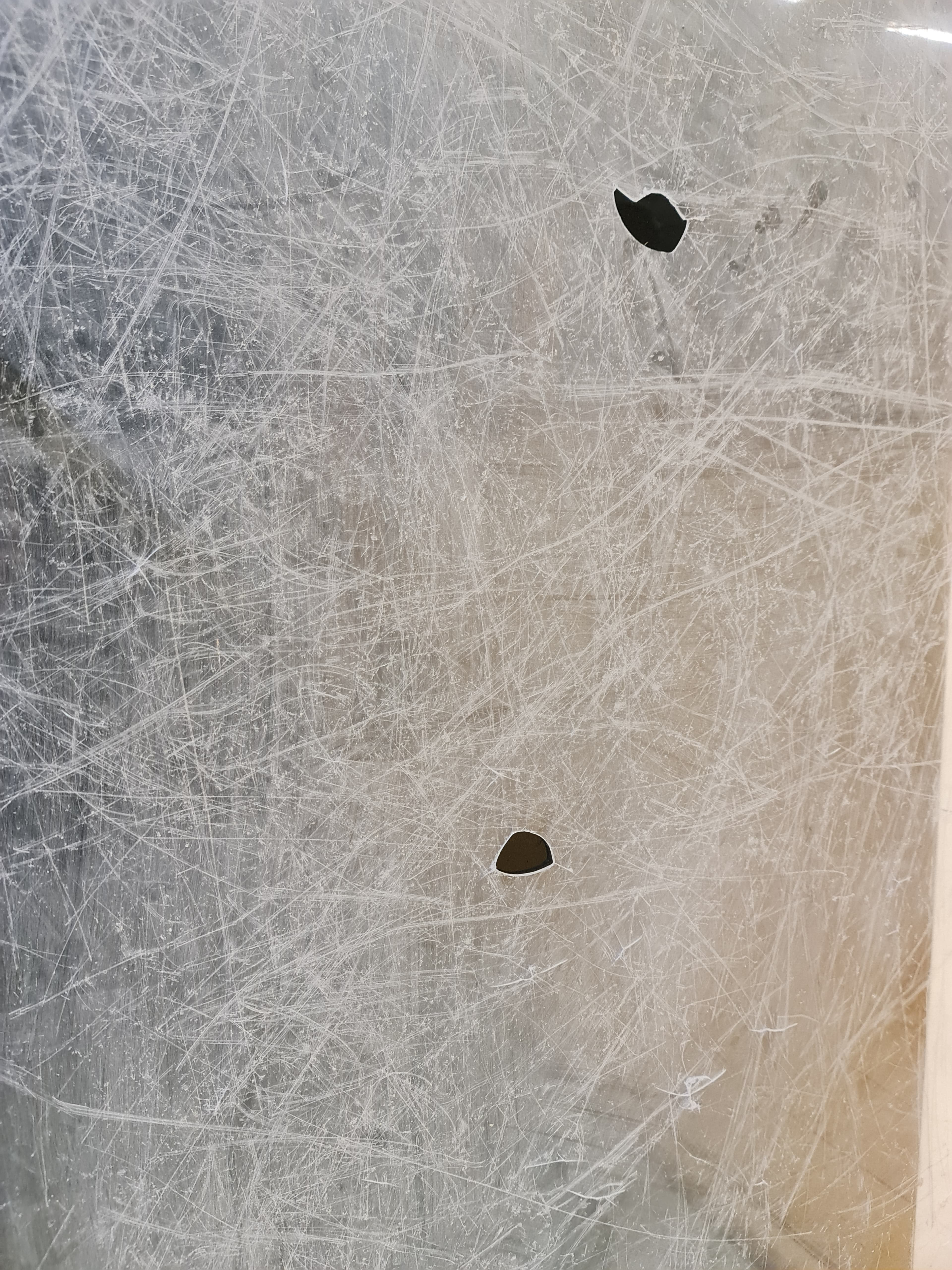 Prepping for the Worst: as strong as our acrylic sheet was, we did not anticipate how many people would be inclined to slam or throw the rocks in the crate, and ended up with a few holes.