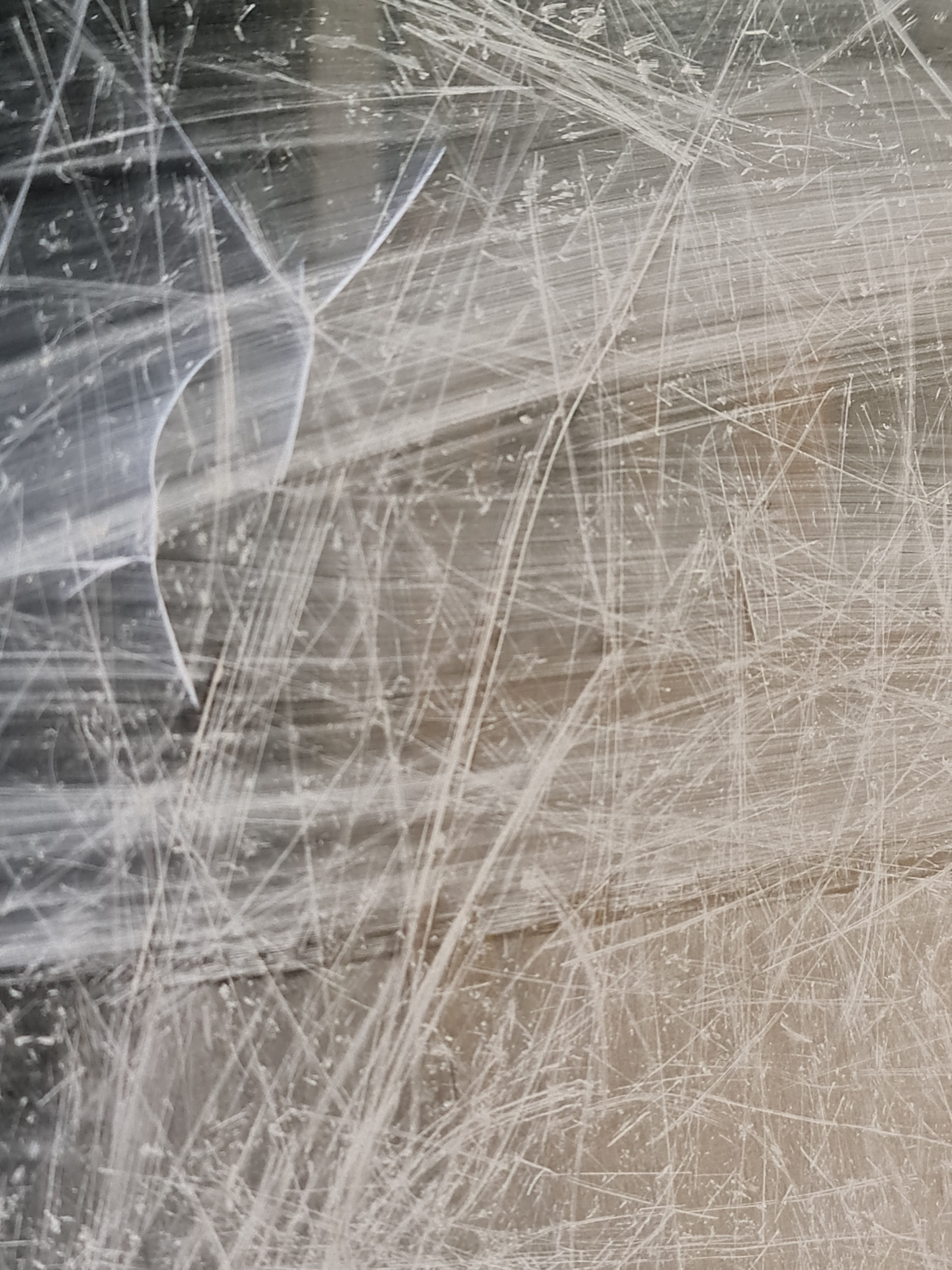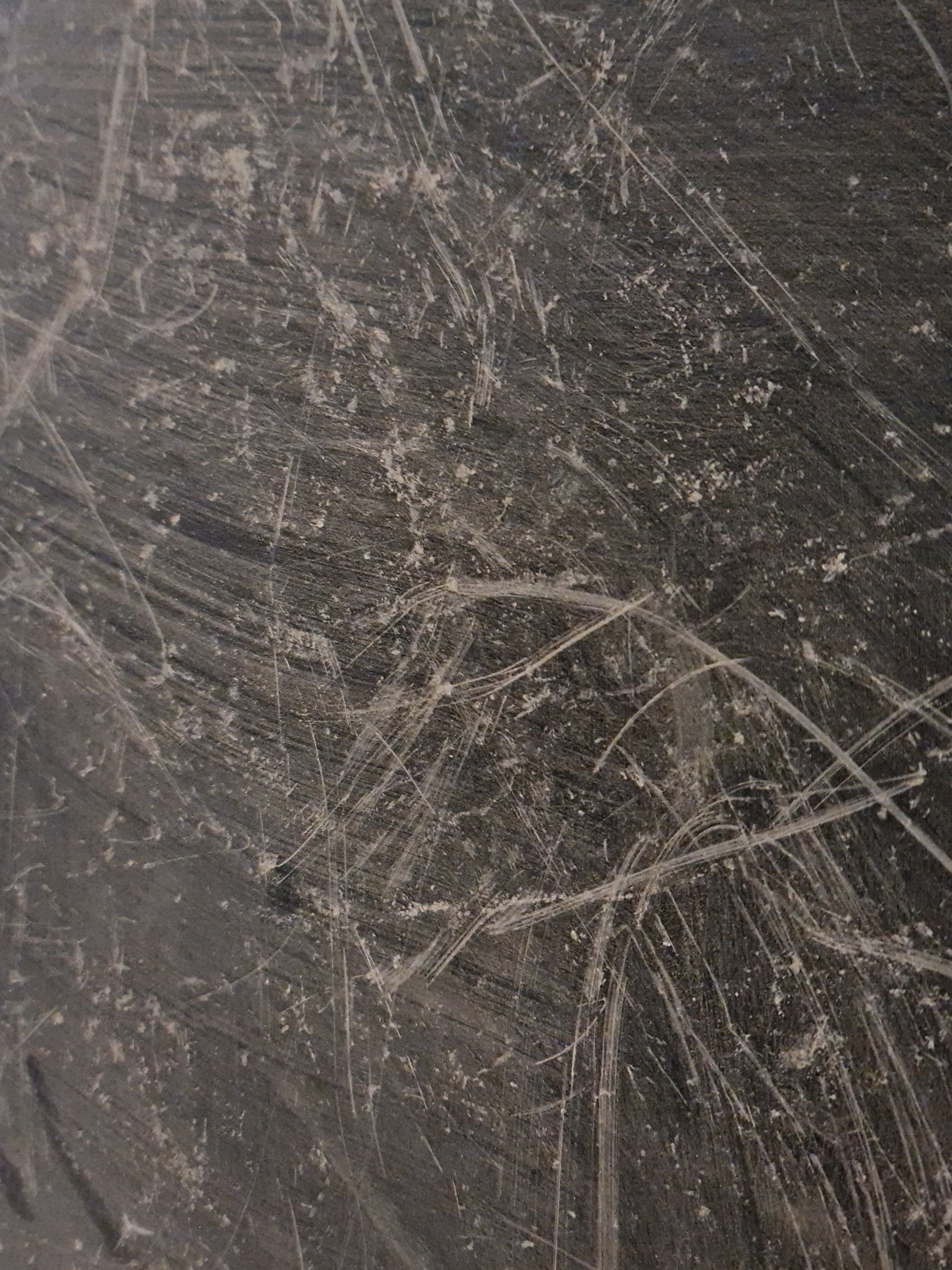 The movement also creates scratches in the plastic material where the rocks sit, generating a permanent record of a temporary installation.